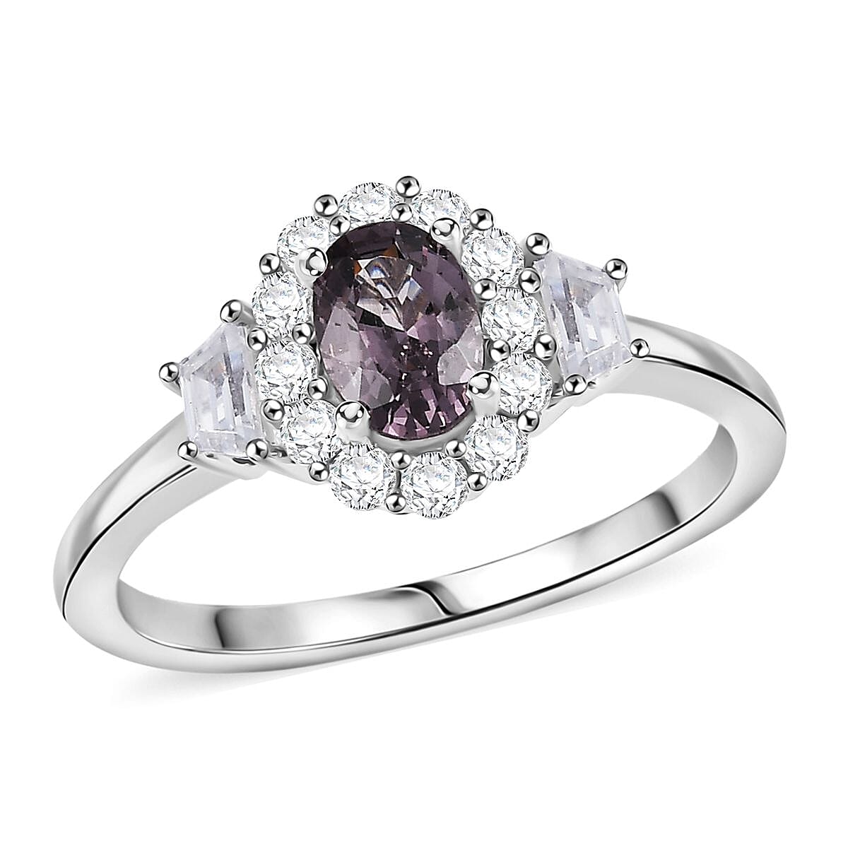 D’Joy Royal Lavender Spinel and White Zircon 1.20 ctw Classic Halo Ring in Rhodium Over Sterling Silver (Size 8.0)