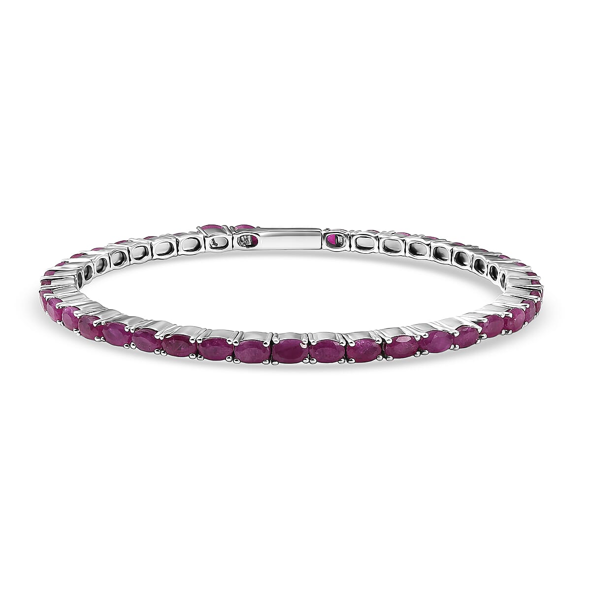 D'Joy Royal Ruby 13.15 ctw Flexible Bangle Bracelet in Rhodium Over Sterling Silver (7.25 In)