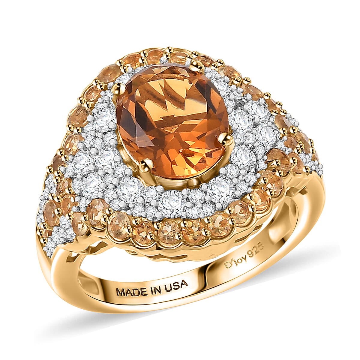 D'Joy Santa Ana Madeira Citrine and White Zircon 4.30 ctw Classic Ornate Oval Ring in 18K Vermeil Yellow Gold Over Sterling Silver (Size 7.0)
