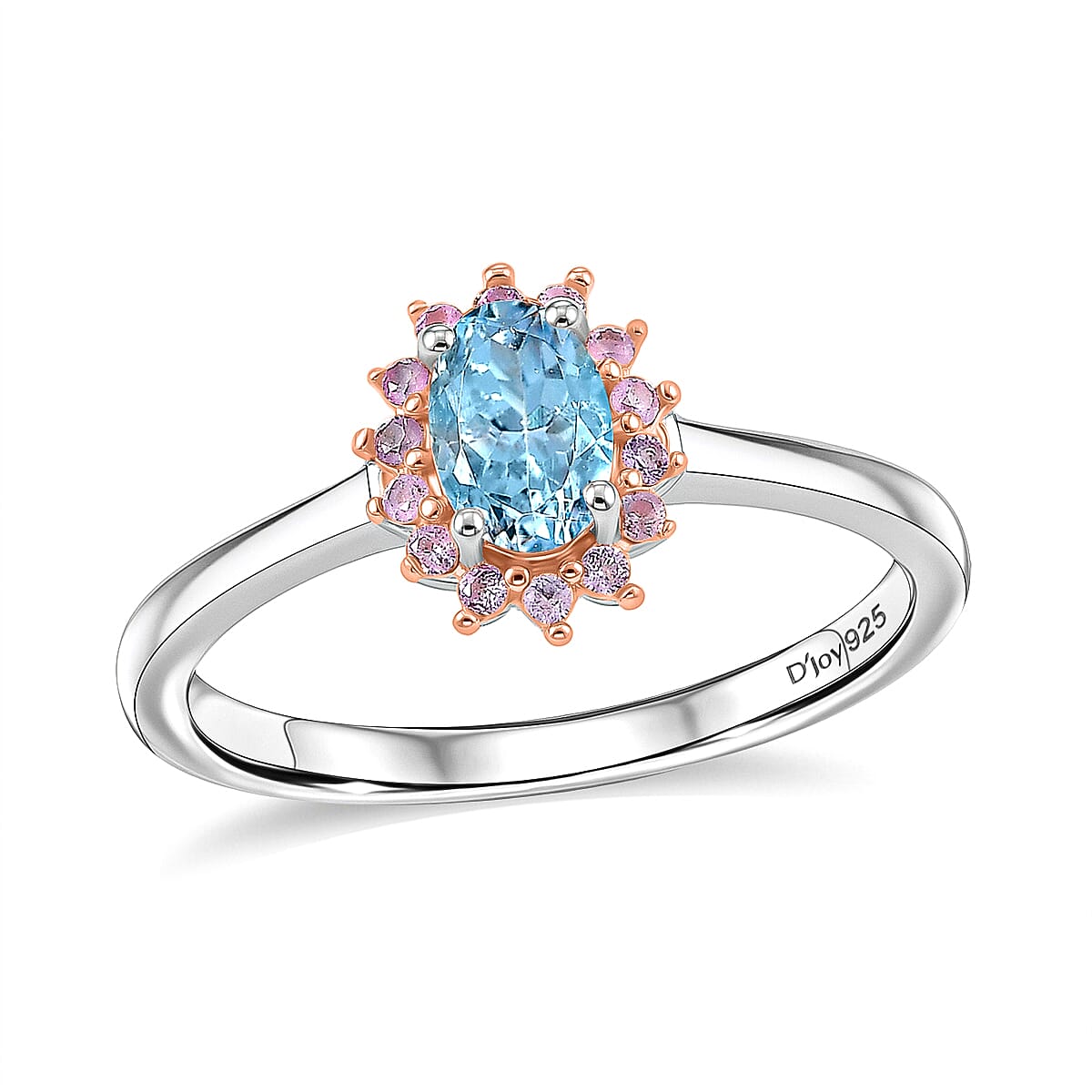 D'Joy Santa Maria Aquamarine and Madagascar Pink Sapphire 0.60 ctw Ring in Rhodium Over Sterling Silver (Size 7.0)