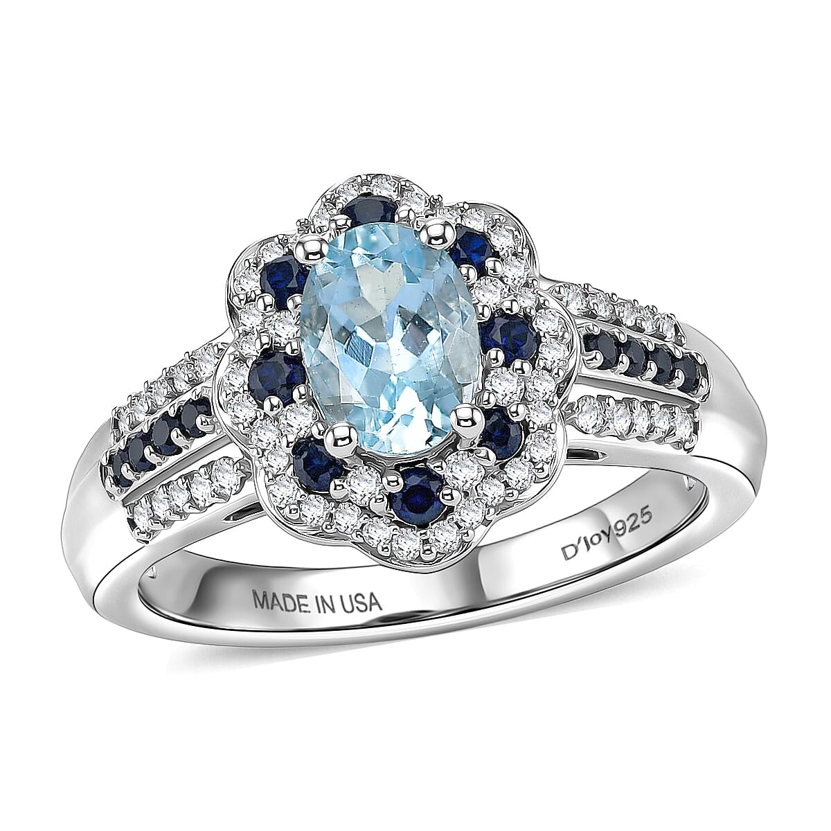 D'Joy Santa Maria Aquamarine and Multi Gemstone 1.35 ctw Ring in Rhodium Over Sterling Silver (Size 7.0)
