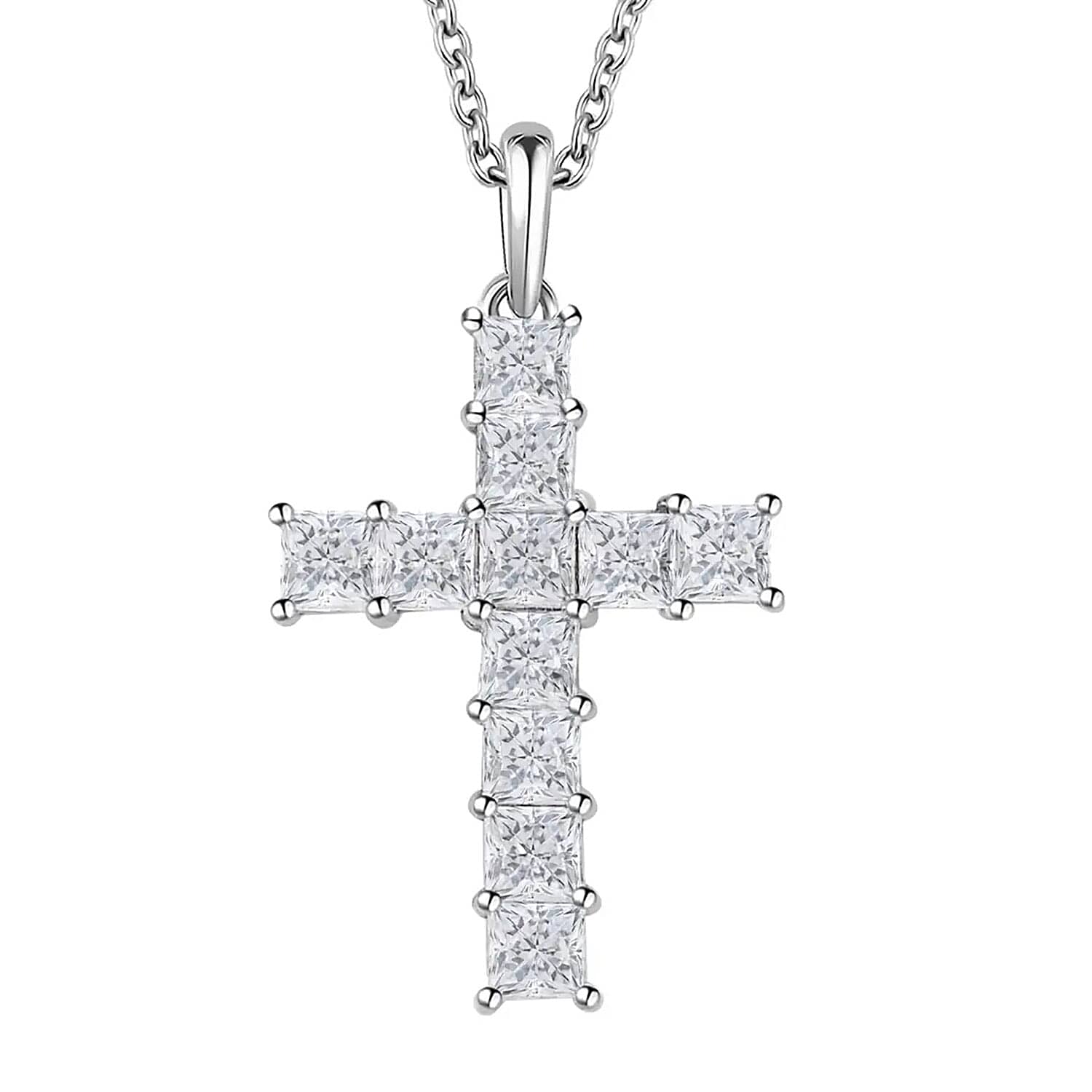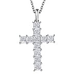 D'Joy Simulated Diamond Cross Pendant in Platinum Over Sterling Silver with Stainless Steel Necklace 20 Inches