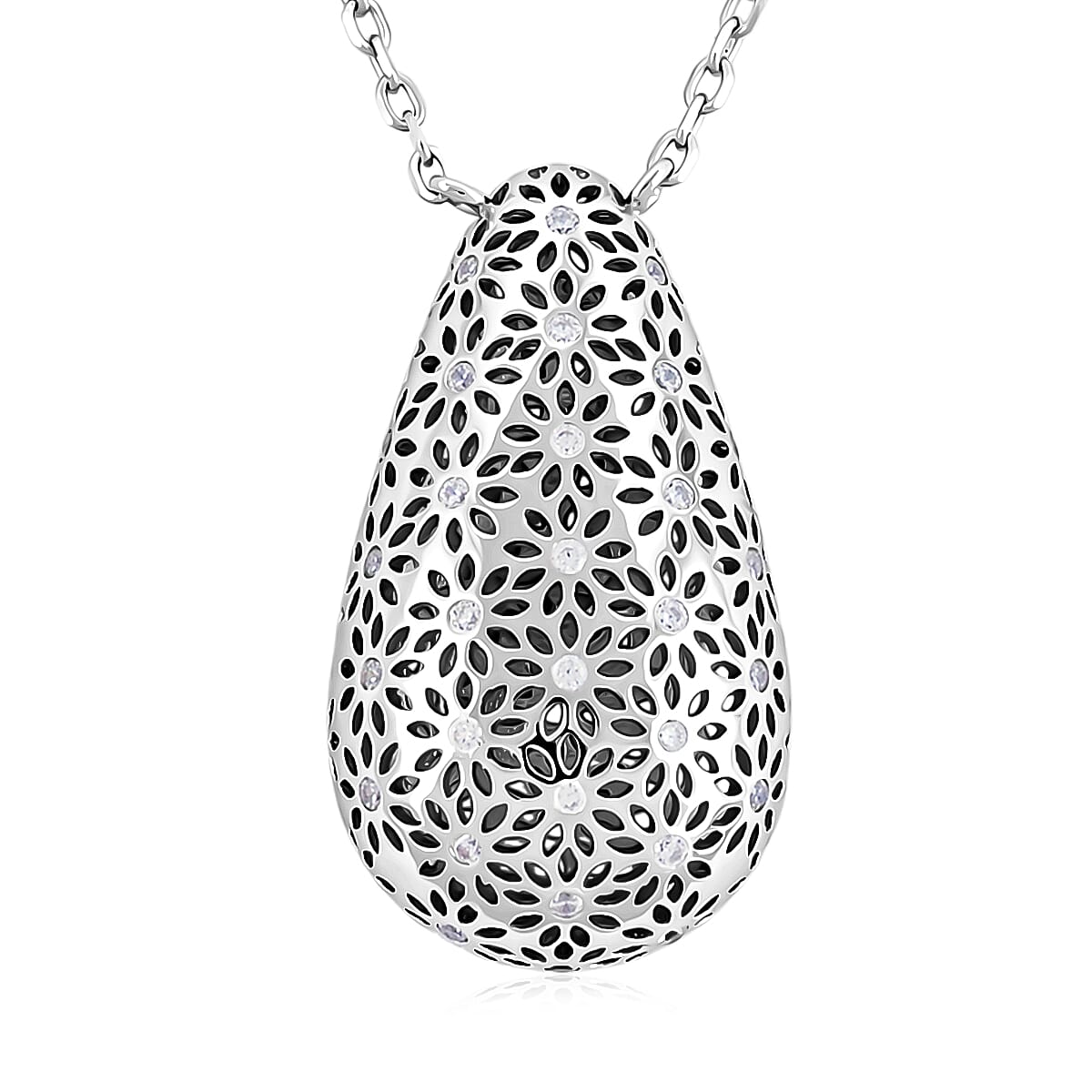 D'Joy Simulated Diamond Teardrop Necklace in Rhodium Over Sterling Silver (18 Inches)