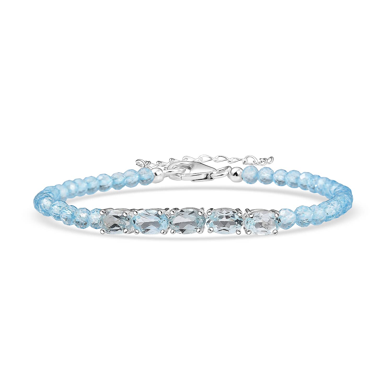 D'Joy Sky Blue Topaz 11.40 ctw Beaded Bracelet in Sterling Silver (6.50-8.00In)