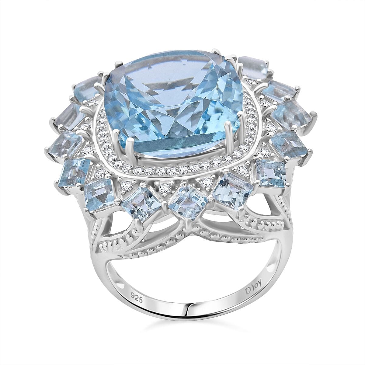 D'Joy Sky Blue Topaz and White Zircon 18.50 ctw Floral Ring in Rhodium Over Sterling Silver (Size 7.0)