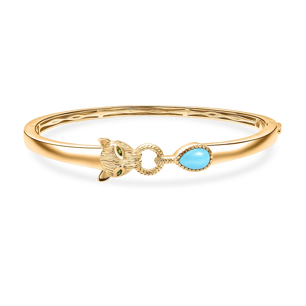 D'Joy Sleeping Beauty Turquoise and Chrome Diopside 1.25 ctw Bangle Bracelet in 18K Vermeil Yellow Gold Over Sterling Silver (7.50 In)