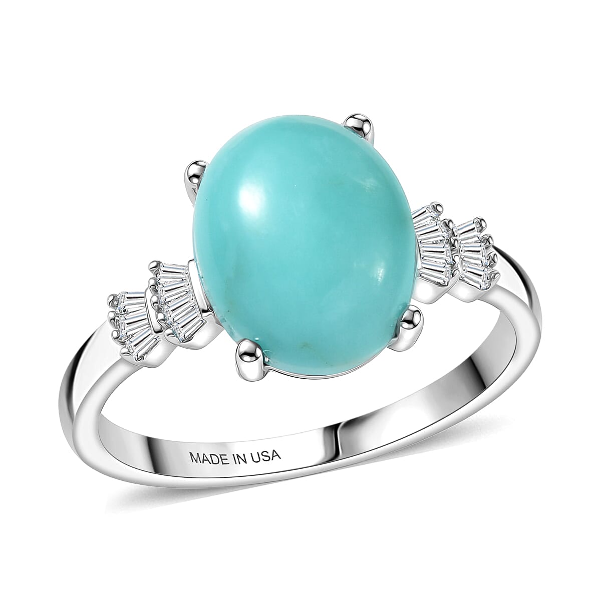 D'Joy Sleeping Beauty Turquoise and Diamond 2.60 ctw Ring in Rhodium Over Sterling Silver (Size 7.0)