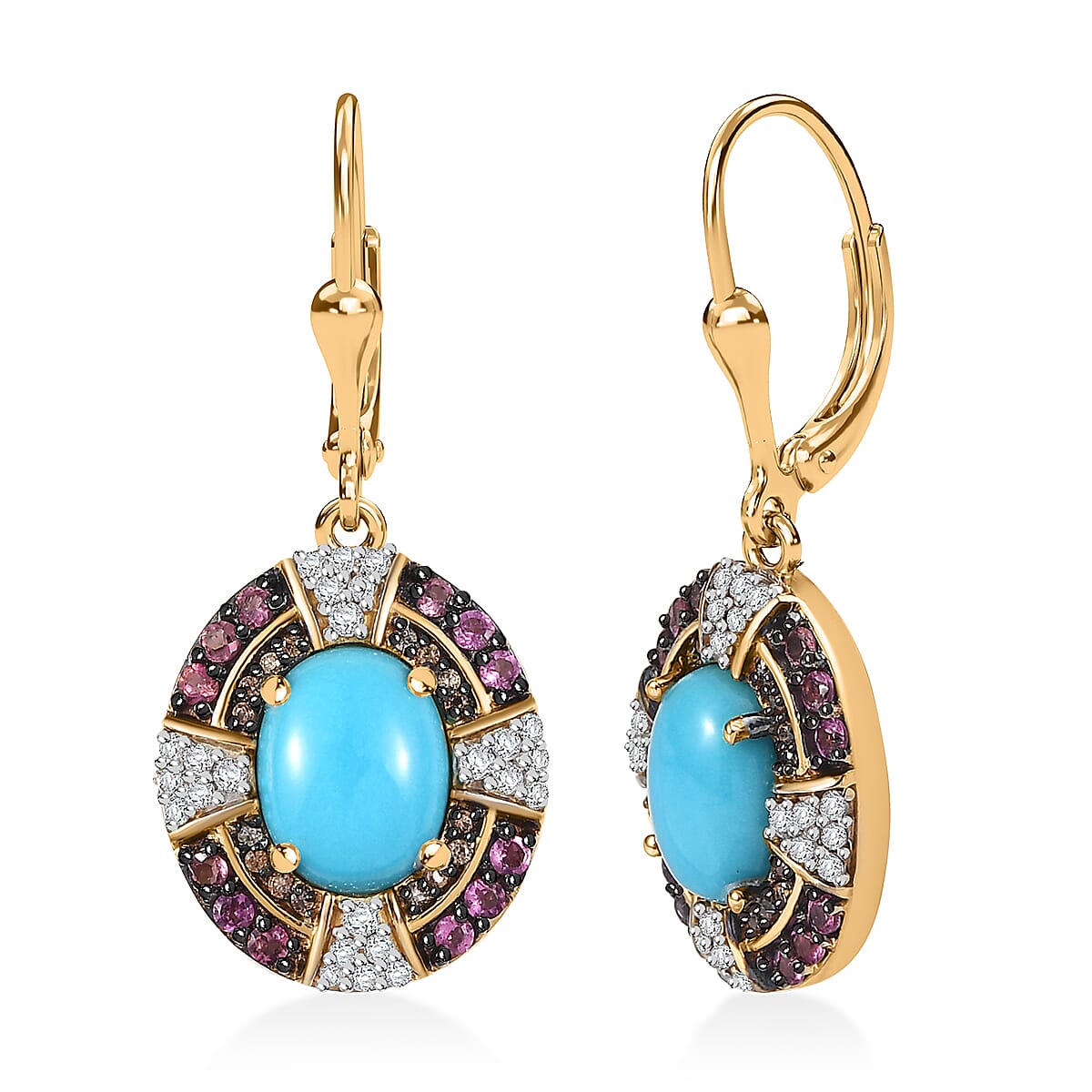 D'Joy Sleeping Beauty Turquoise and Multi Gemstone 4.85 ctw Lever Back Earring in 18K Vermeil Yellow Gold Over Sterling Silver