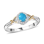 D'Joy Sleeping Beauty Turquoise and White Zircon 0.70 ctw Ring in 18K Vermeil YG and Rhodium Over Sterling Silver (Size 8.0)