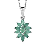 D'Joy Socoto Emerald 0.90 ctw Floral Pendant Necklace in Rhodium Over Sterling Silver 20 Inches