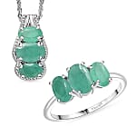 D'Joy Socoto Emerald 2.70 ctw Ring (Size 6.0) and Pendant Necklace 20 Inches in Rhodium Over Sterling Silver (Del. In 10-12 Days)