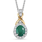 D'Joy Socoto Emerald and White Zircon 0.55 ctw Pendant Necklace in 18K Vermeil YG and Rhodium Over Sterling Silver 20 Inches