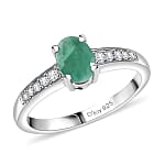 D'Joy Socoto Emerald and White Zircon 1.00 ctw Ring in Rhodium Over Sterling Silver (Size 5.0)