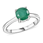 D'Joy Socoto Emerald Solitaire Ring in Rhodium Over Sterling Silver (Size 5.0) 1.15 ctw