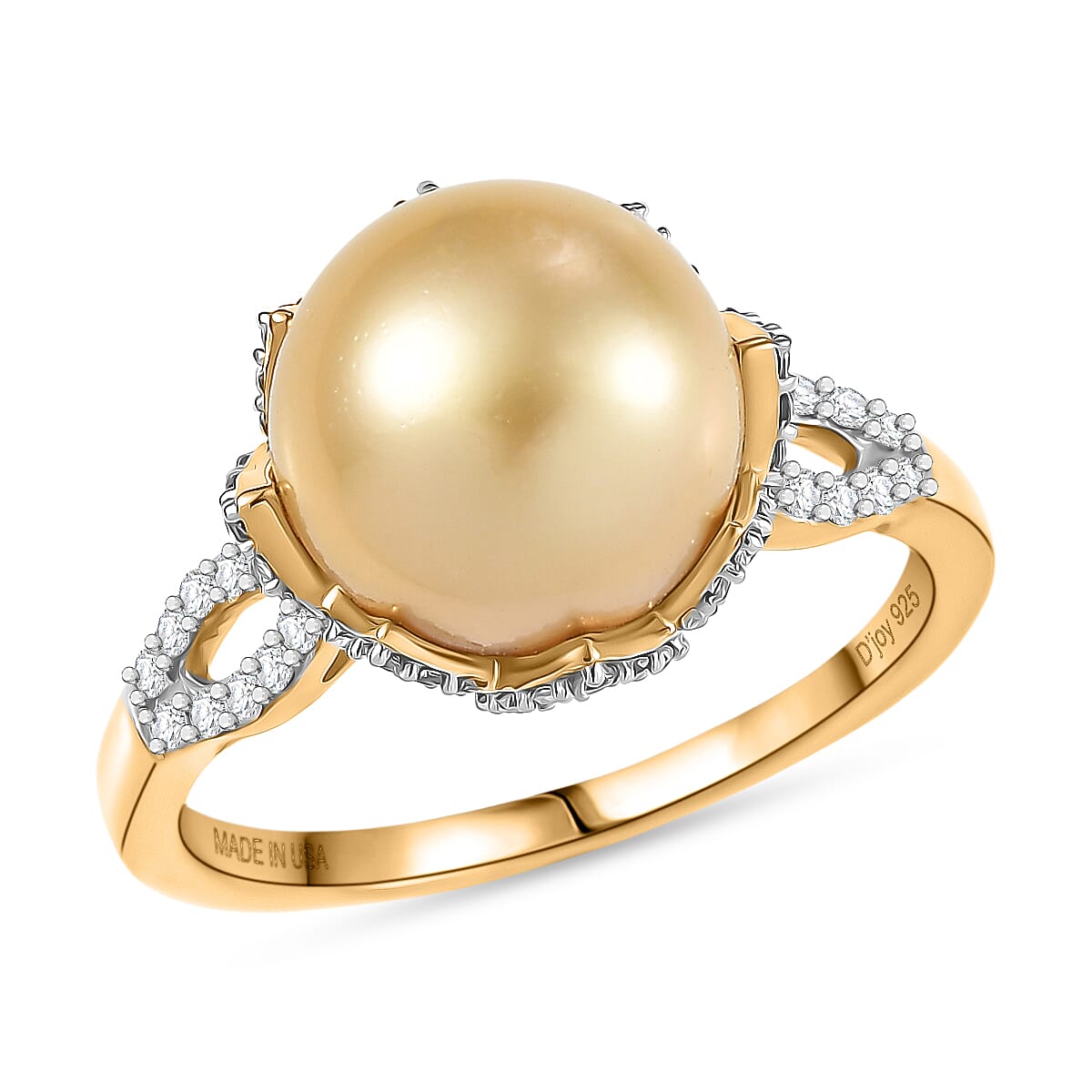 Flaunt elegance with this D’Joy South Sea golden pearl ring in sterling silver. The golden pearl glows against white zircons in this sterling silver ring. Your style will reach new heights with this luxury sunbeam loop ring.