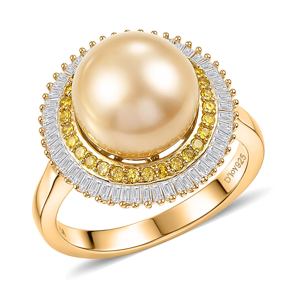 Celebrate life's special moments with the D'Joy South Sea golden cultured pearl ring in sterling silver. This halo ring creates lasting emotional connections for you. This silver ring becomes a cherished symbol of your precious moments.