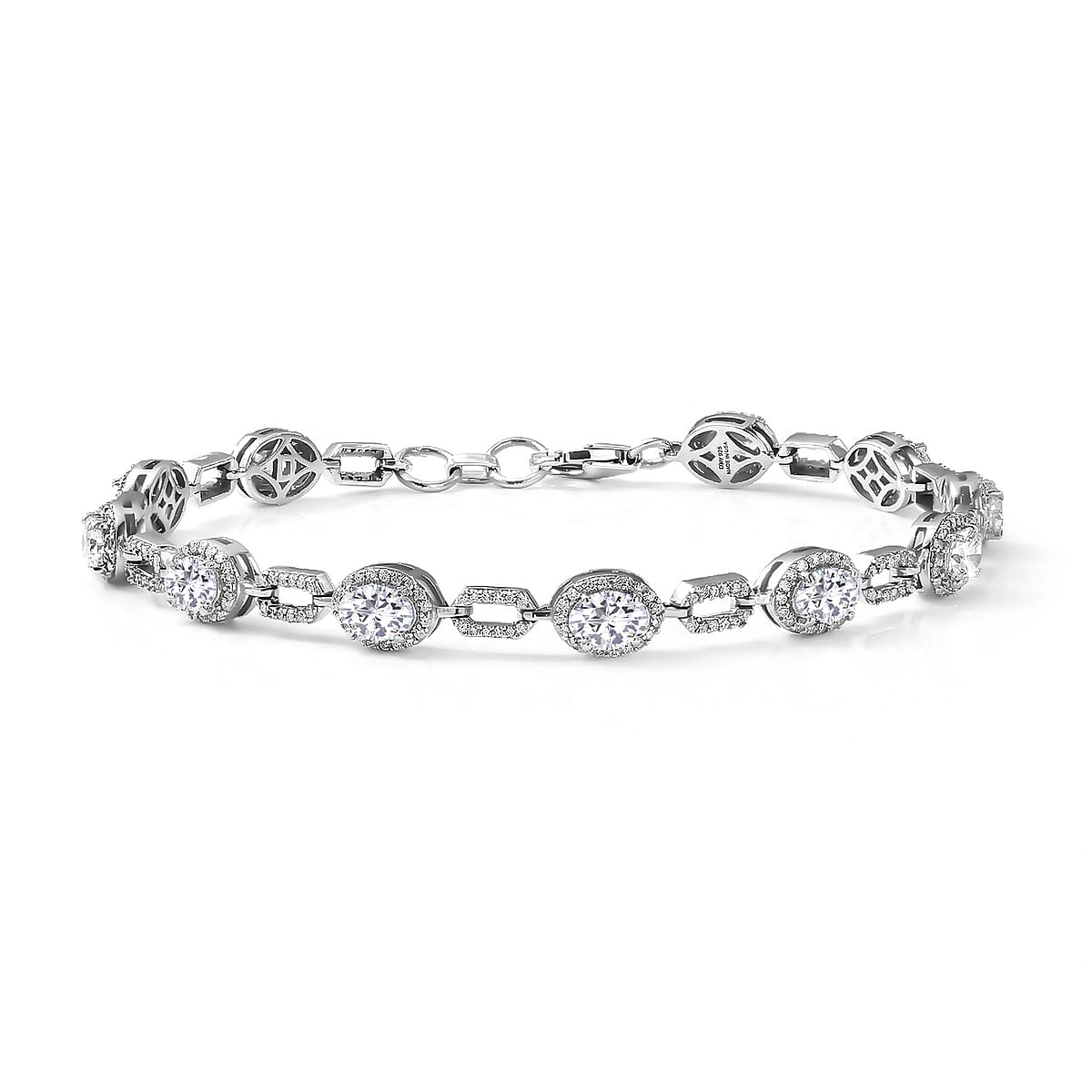 D'Joy Strontium Titanate and Moissanite 8.35 ctw Oval Symphony Bracelet in Rhodium Over Sterling Silver (7.25 In)