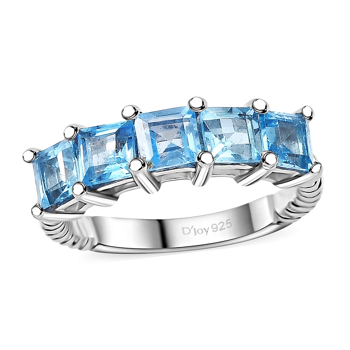 D'Joy Swiss Blue Topaz 2.15 ctw 5 Stone Ring in Rhodium Over Sterling Silver (Size 6.0)