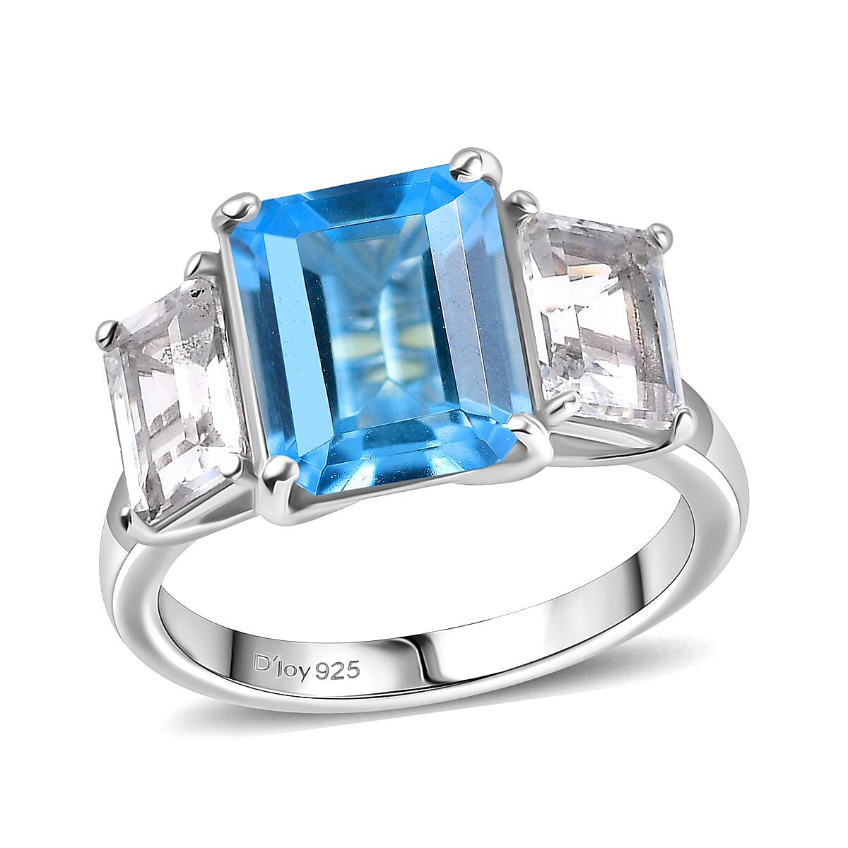 D'Joy Swiss Blue Topaz and White Topaz 7.70 ctw 3 Stone Ring in Platinum Over Sterling Silver (Size 7.0)