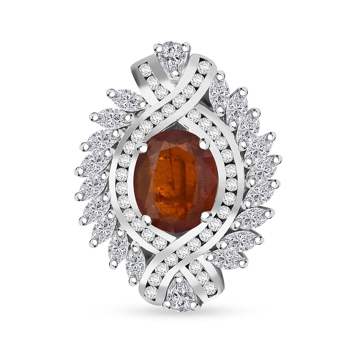D'Joy Tangerine Kyanite and White Zircon 7.75 ctw Twilight Crest Ring in Rhodium Over Sterling Silver (Size 7.0)
