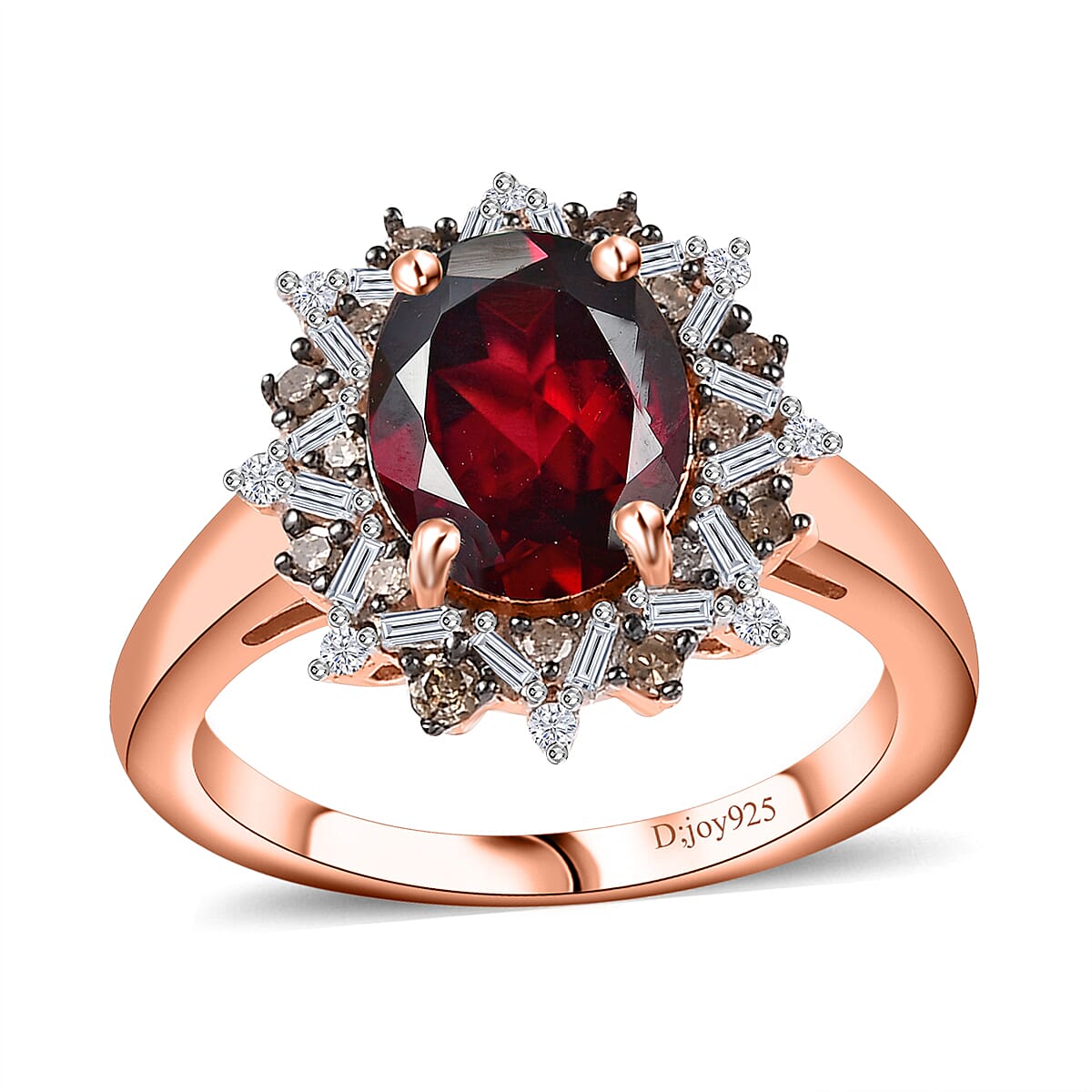 D'Joy Tanzanian Wine Garnet, Natural Champagne and White Diamond Sunflower Ring in 18K Vermeil Rose Gold Over Sterling Silver 2.35 ctw