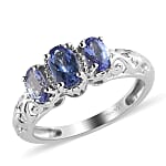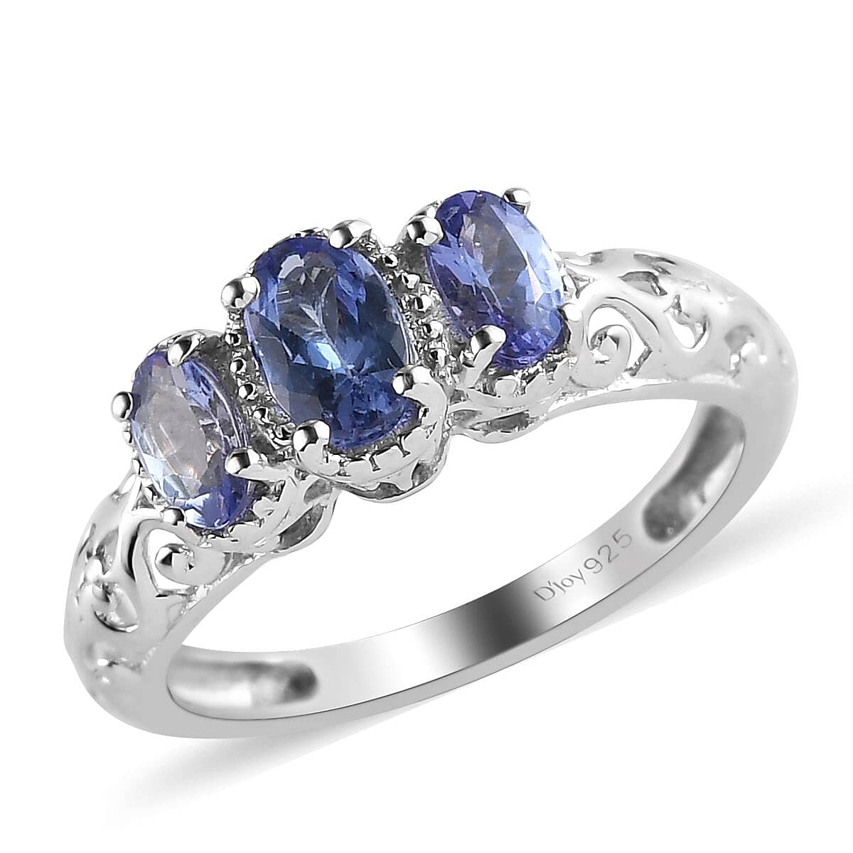 D'Joy Tanzanite 0.90 ctw 3 Stone Ring in Platinum Over Sterling Silver (Size 6.0)
