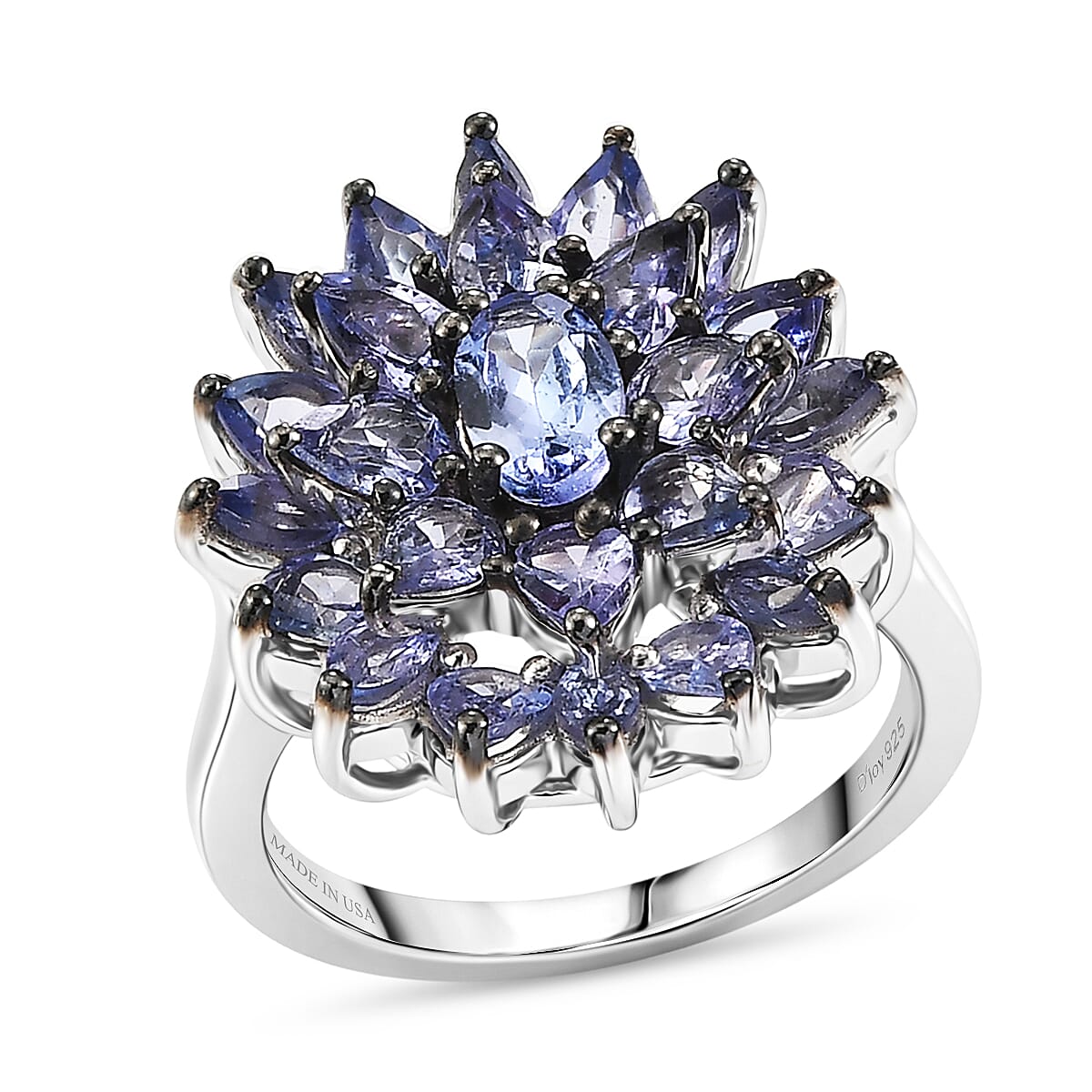 D'Joy Tanzanite 3.50 ctw Royal Floral Spark Ring in Rhodium Over Sterling Silver (Size 10.0)