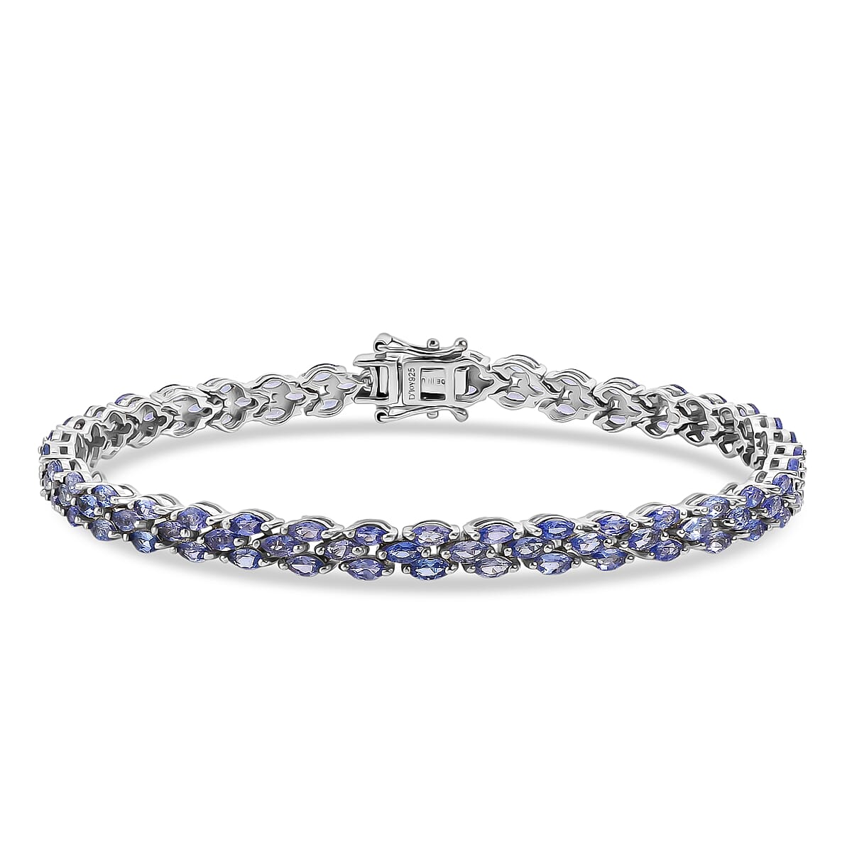 D'Joy Tanzanite 9.50 ctw Floral Garland Tennis Bracelet in Rhodium Over Sterling Silver (8.00 In)