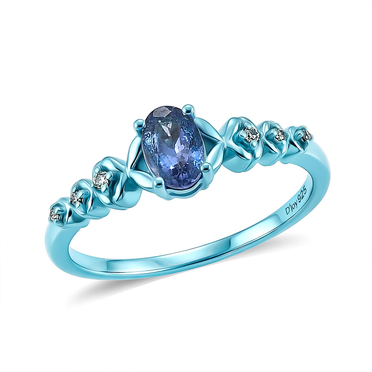 D'Joy Tanzanite and Moissanite 0.50 ctw Nature Glow Floral Ring in Blue E-coat Sterling Silver (Size 10.0)