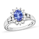 D'Joy Tanzanite and Moissanite 1.25 ctw Sunburst Ring in Rhodium Over Sterling Silver (Size 4.5)