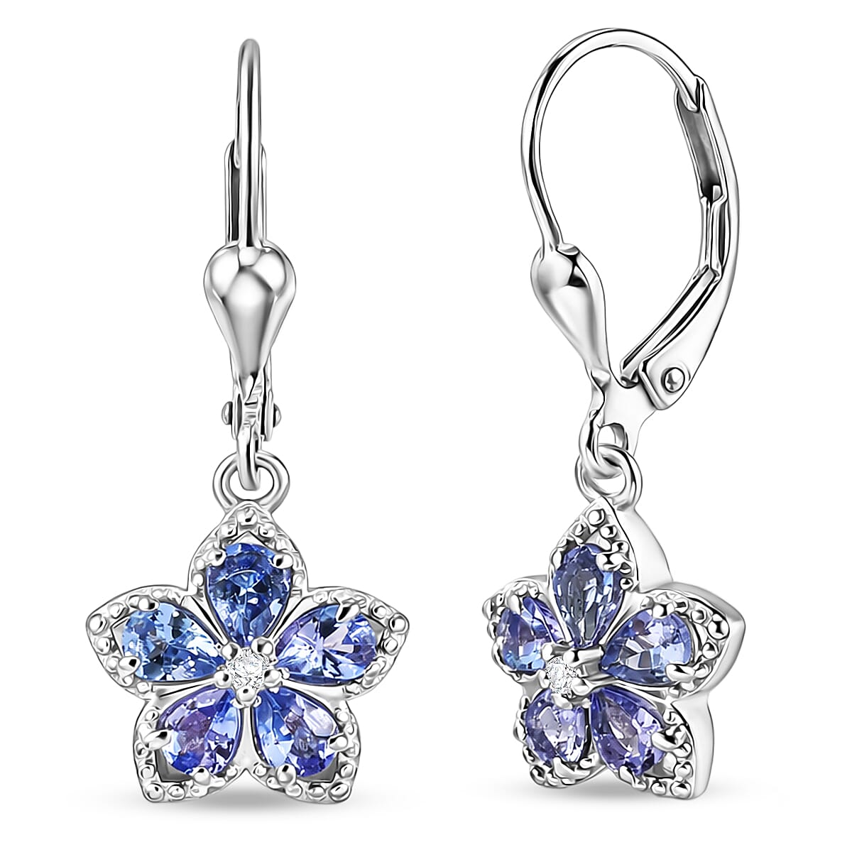 D'Joy Tanzanite and Moissanite 1.50 ctw Floral Bloom Earrings in Rhodium Over Sterling Silver