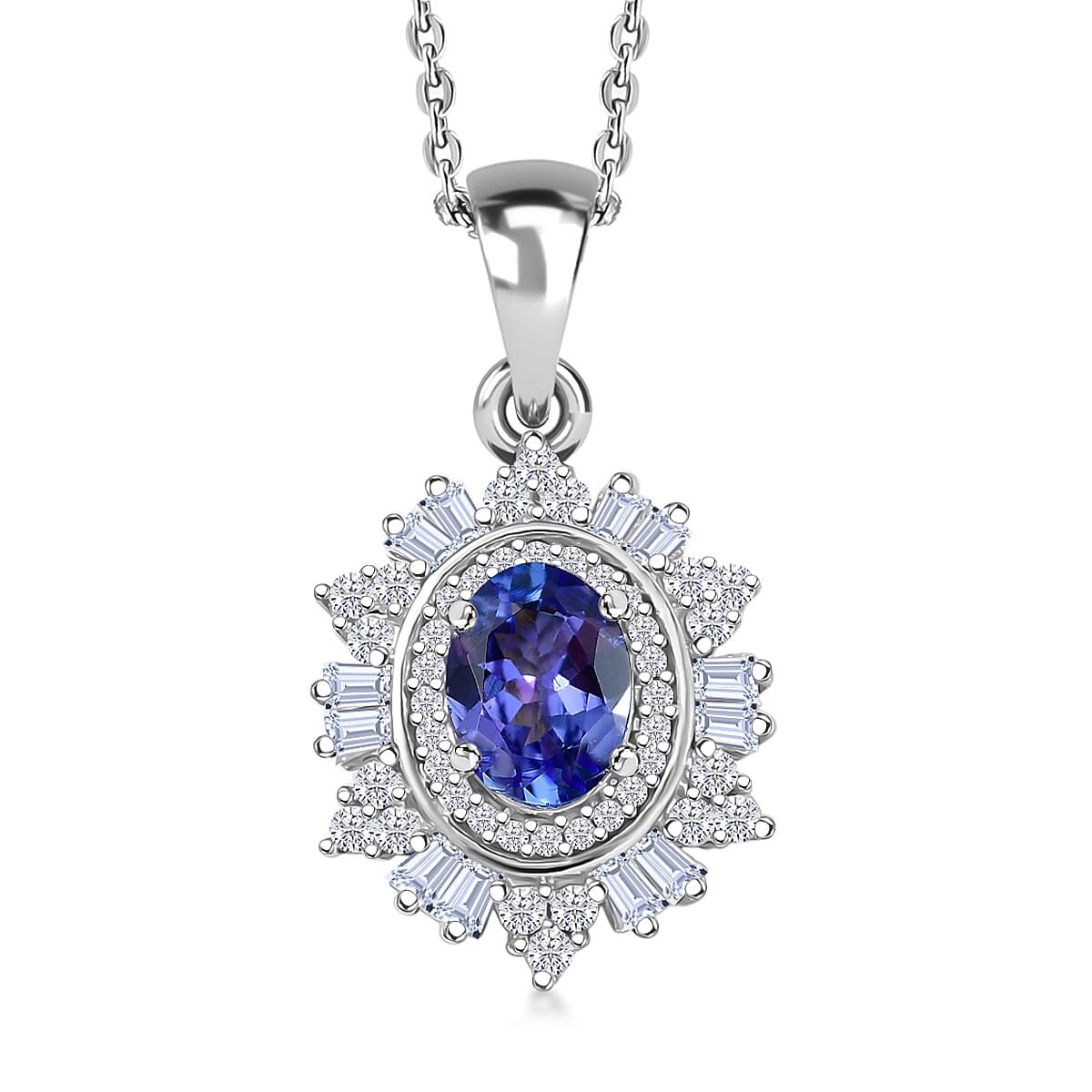 D'Joy Tanzanite and Moissanite 1.65 ctw Azure Starburst Pendant Necklace in Rhodium Over Sterling Silver 20 Inches