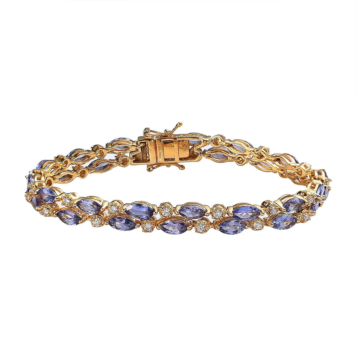 D'Joy Tanzanite and Moissanite Bracelet in Vermeil Yellow Gold Over Sterling Silver (7.25 In) 11.50 ctw