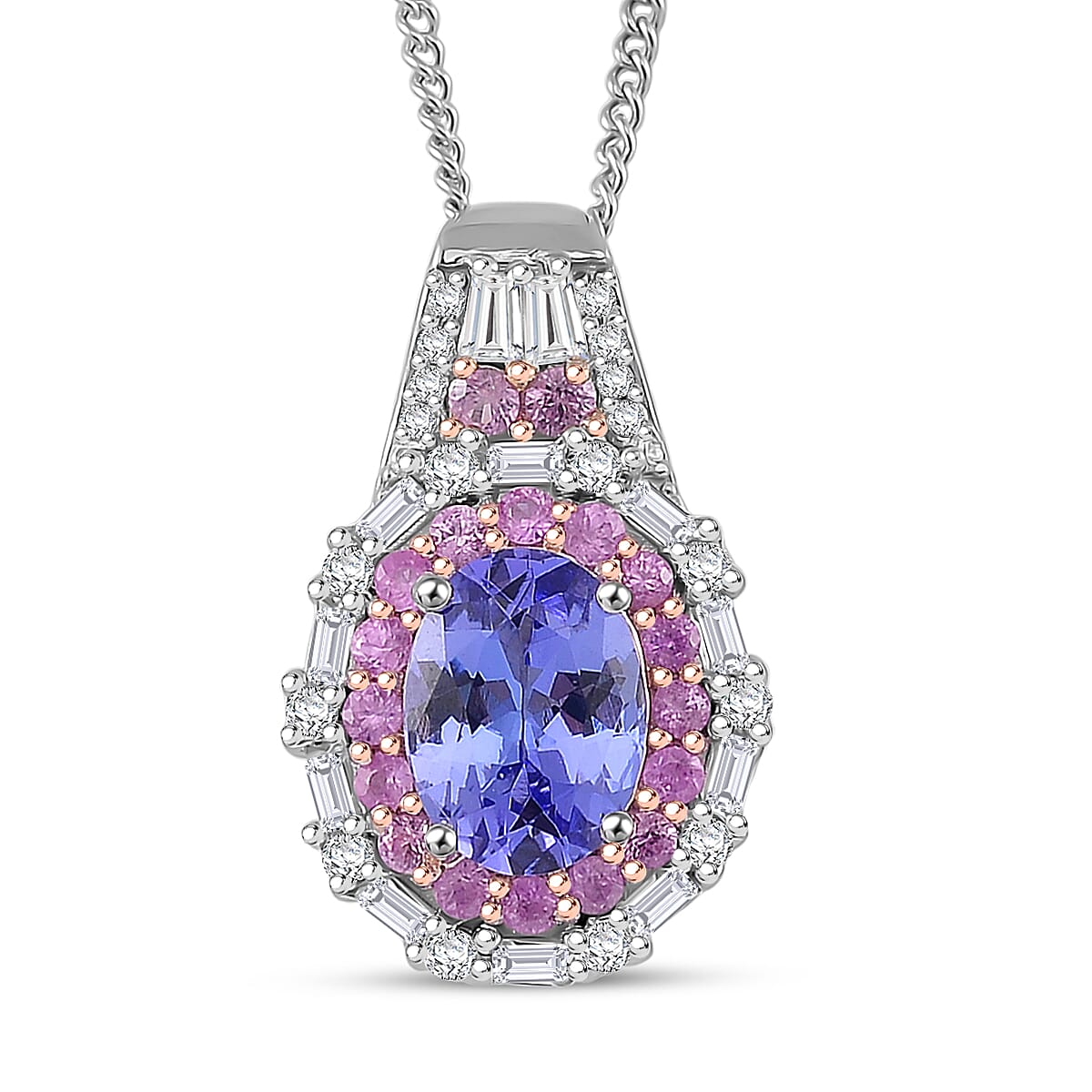 D'Joy Tanzanite and Multi Gemstone 2.15 ctw Rosefire Pendant Necklace in 18K Vermel RG and Rhodium Over Sterling Silver 18 Inches