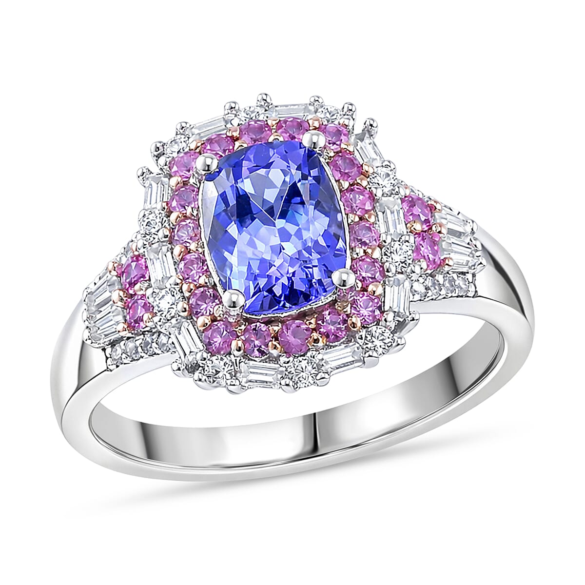 D'Joy Tanzanite and Multi Gemstone 2.40 ctw Ring in 18K Vermeil RG and Rhodium Over Sterling Silver (Size 9.0)
