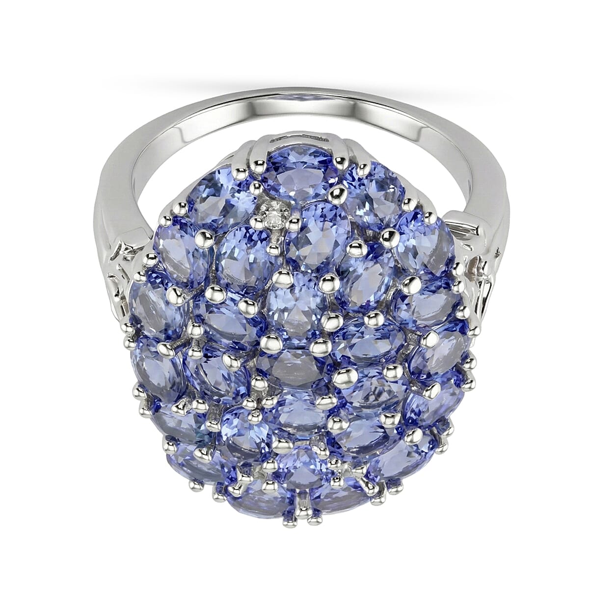 D'Joy Tanzanite and White Zircon 4.90 ctw Ring in Rhodium Over Sterling Silver (Size 8.0)