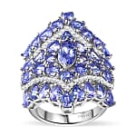 D'Joy Tanzanite and White Zircon 6.00 ctw Crown Prestige Ring in Platinum Over Sterling Silver (Size 6.0)