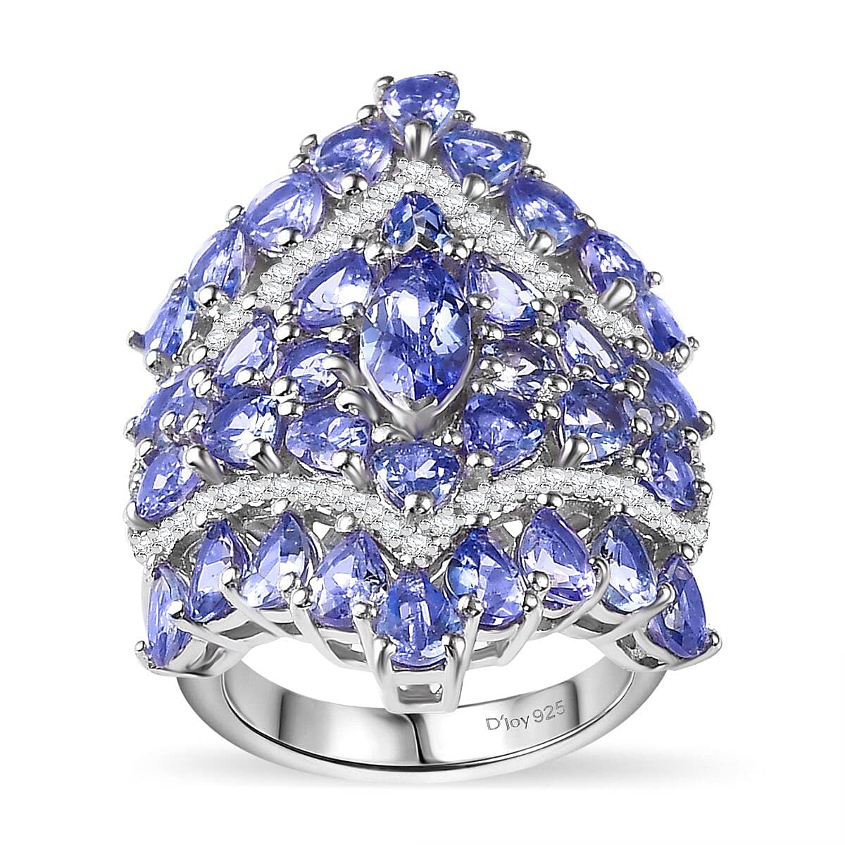 D'Joy Tanzanite and White Zircon 6.00 ctw Crown Prestige Ring in Platinum Over Sterling Silver (Size 9.0)