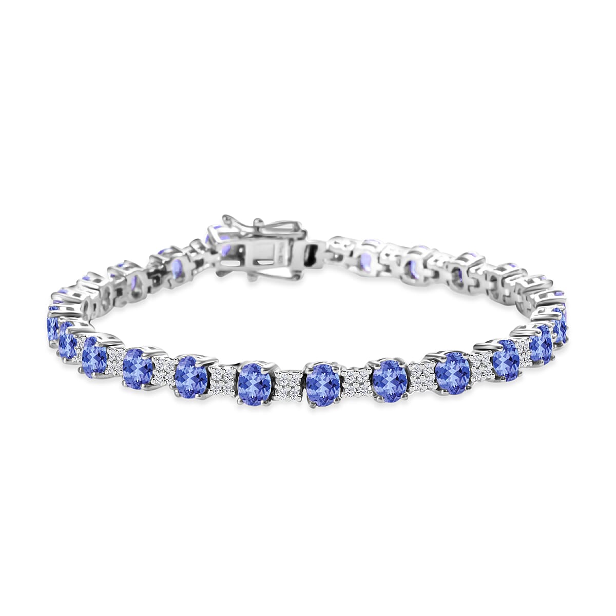 D'Joy Tanzanite and White Zircon Bracelet in Rhodium Over Sterling Silver (7.25 In) 10.85 ctw
