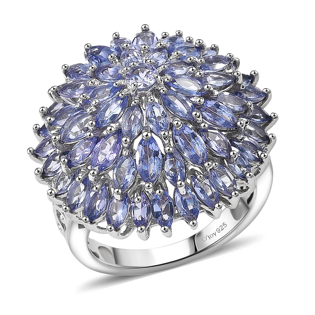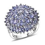 D'Joy Tanzanite Chrysanthemum Flower Ring in Rhodium Over Sterling Silver 5.60 ctw (Size 9.0)