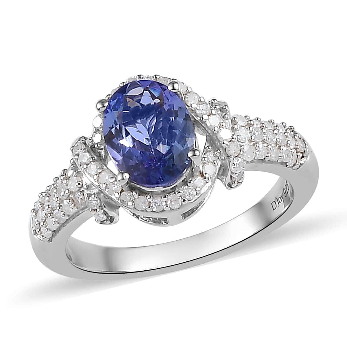 D'Joy Tanzanite, Diamond Ring in Platinum Over Sterling Silver, Engagement Ring, Promise Rings For Women, Oval Engagement Ring 1.65 ctw (Size 8)