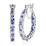D'Joy Tanzanite Hoop Earrings in Rhodium Over Sterling Silver 5.70 ctw