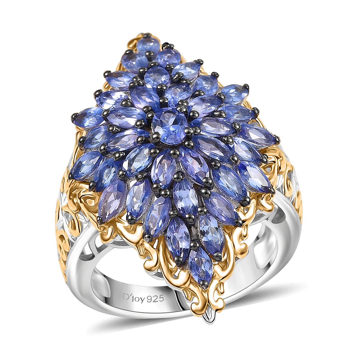 D'Joy Tanzanite Victorian Era Ring in 18K Vermeil YG and Rhodium Over Sterling Silver 3.70 ctw (Size 7.0)