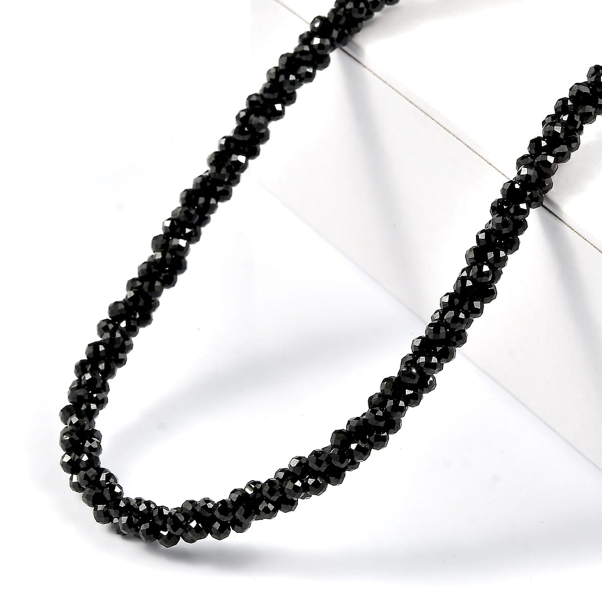 D'Joy Thai Black Spinel 78.00 ctw Twisted Three Row Beaded Necklace in Rhodium Over Sterling Silver 20 Inches (Del. in 10-12 Days)