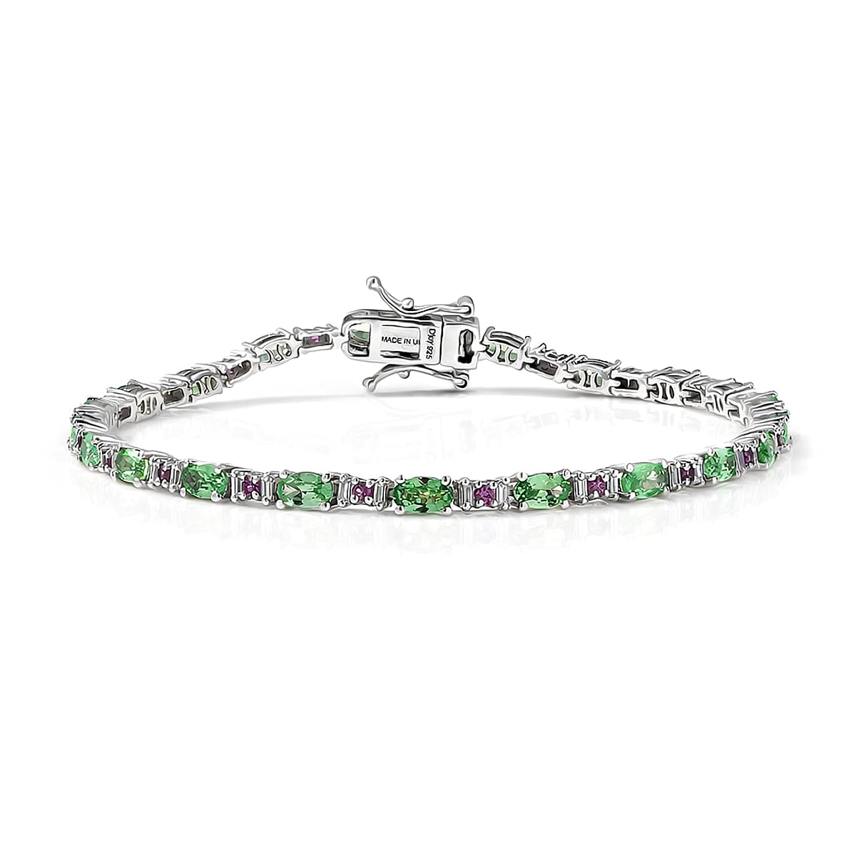 D'Joy Tsavorite Garnet and Multi Gemstone 5.75 ctw Bracelet in Rhodium Over Sterling Silver (7.25 In)
