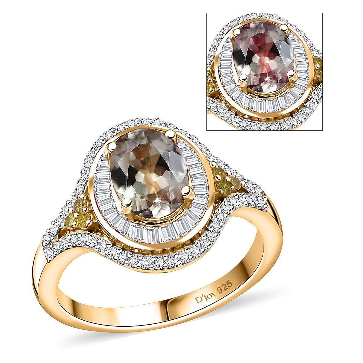 D'Joy Turkizite, Yellow and White Diamond 2.00 ctw Celestial Ring in 18K Vermeil Yellow Gold Over Sterling Silver (Size 7.0)