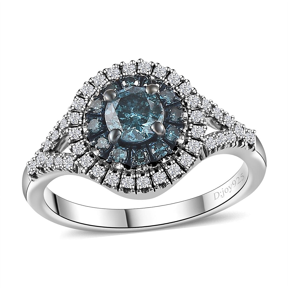 D'Joy Venice Blue Diamond 12-I3 and White Diamond Double Halo Ring in Platinum Over Sterling Silver (Size 9.0) 1.00 ctw