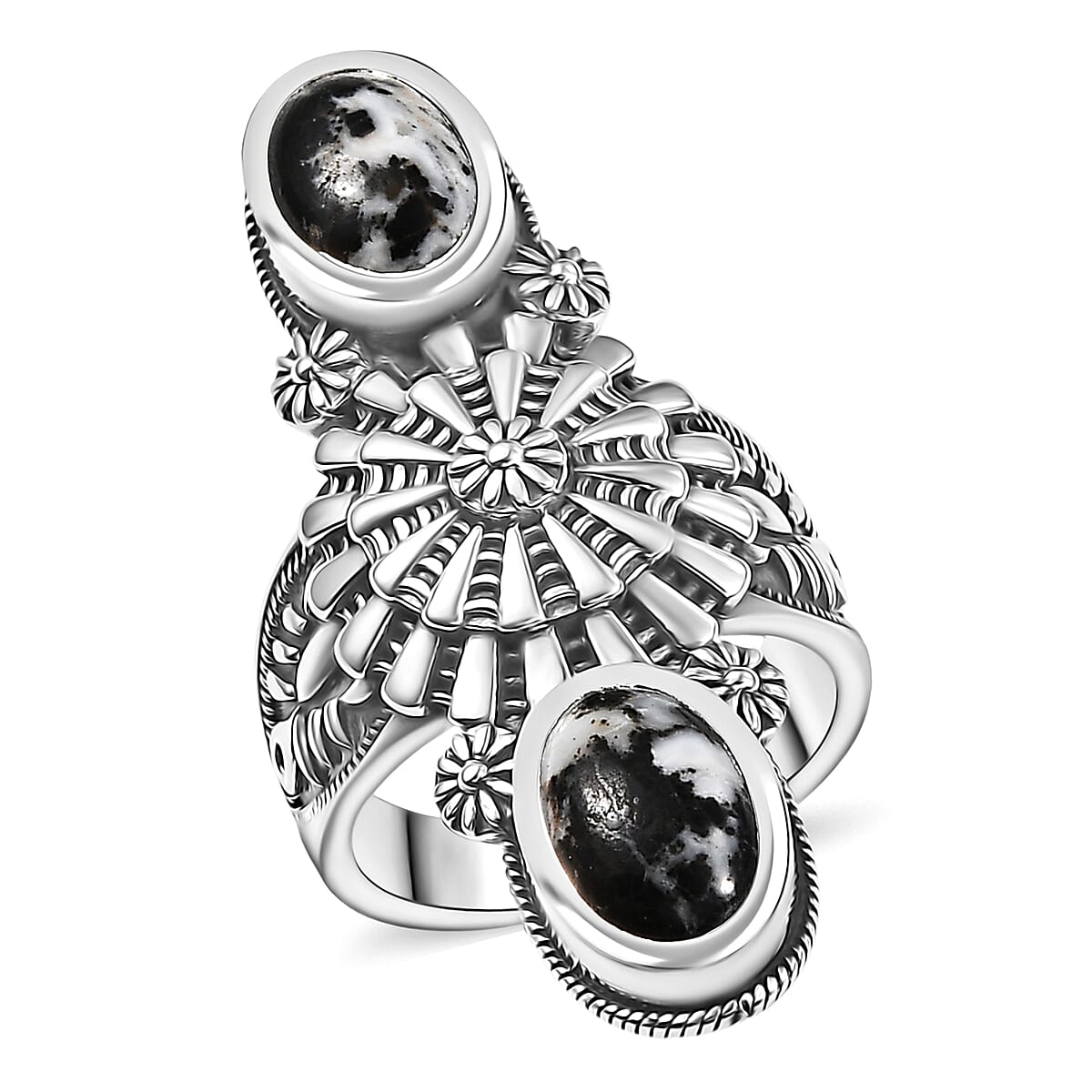 Showcase your style with this D’Joy white buffalo ring in sterling silver. The contrasting white and black stones create a unique, handcrafted statement piece. You will appreciate how this artisan silver jewelry reflects your distinctive taste.