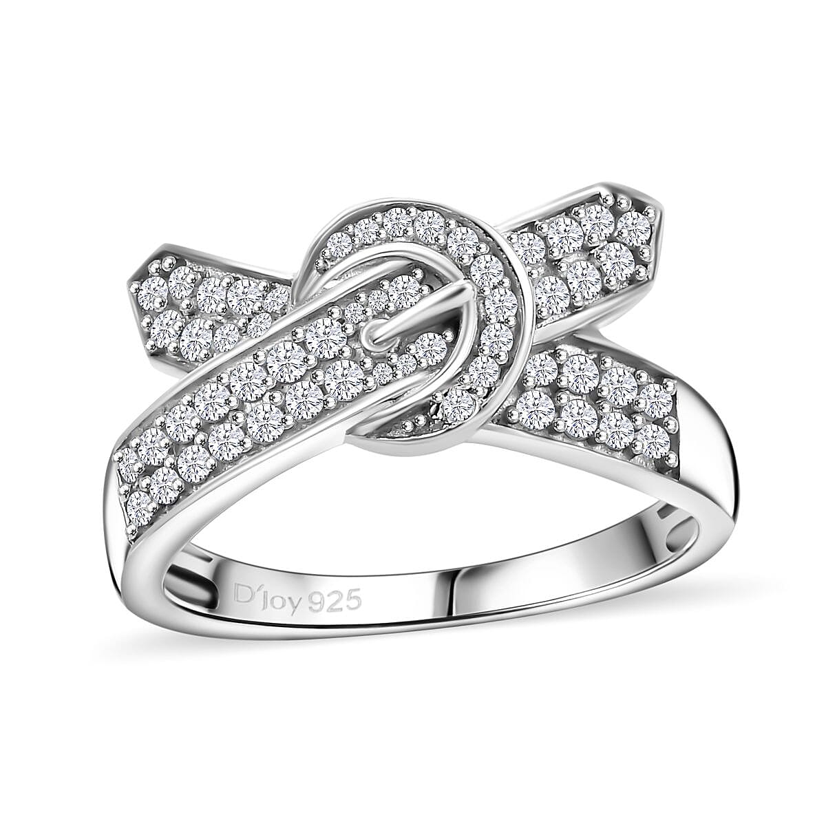 D'Joy White Diamond 0.50 ctw Buckle Ring in Rhodium Over Sterling Silver (Size 8.0)