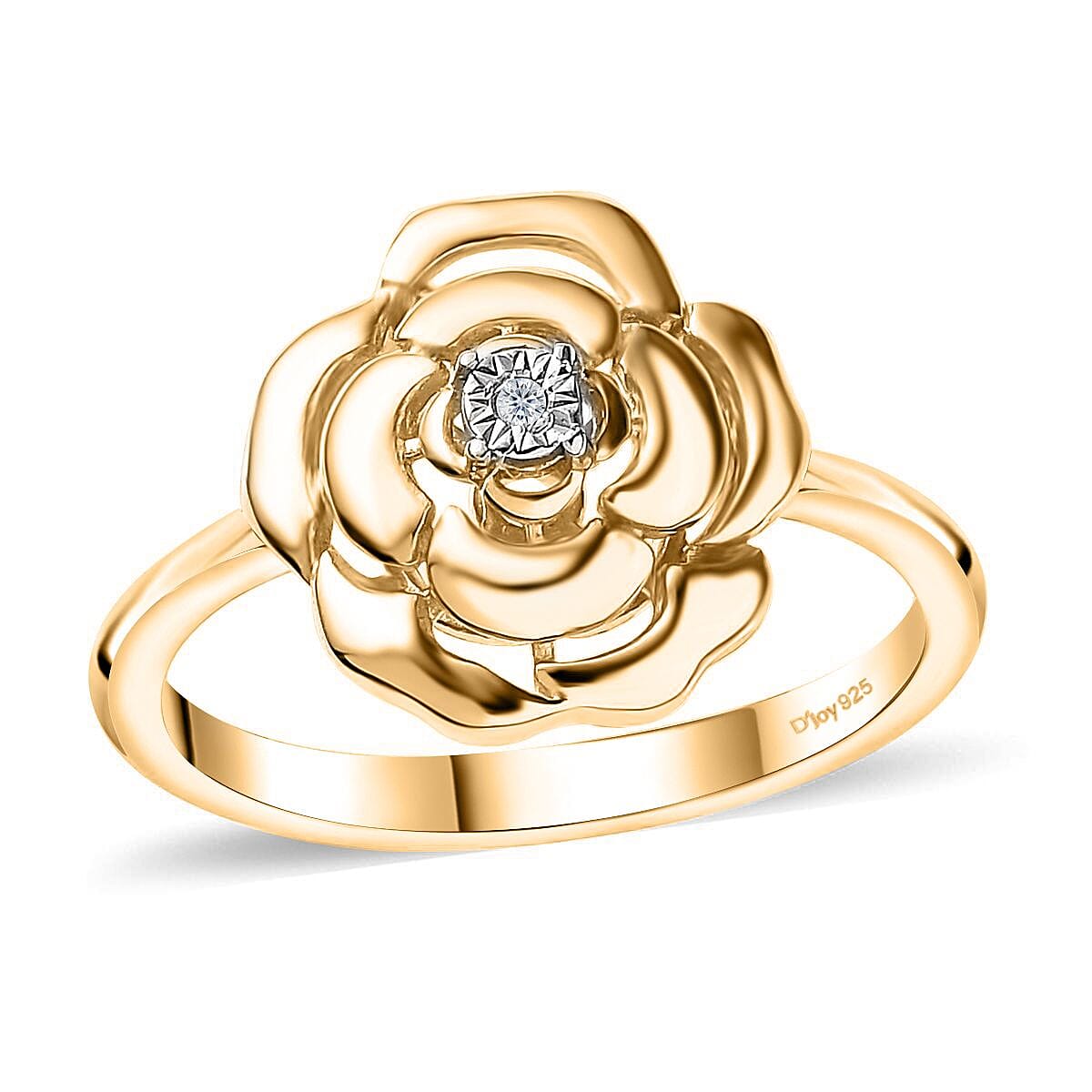 D'Joy White Diamond Accent Rose Flower Ring in 14K Yellow Gold Over Sterling Silver (Size 10.0)